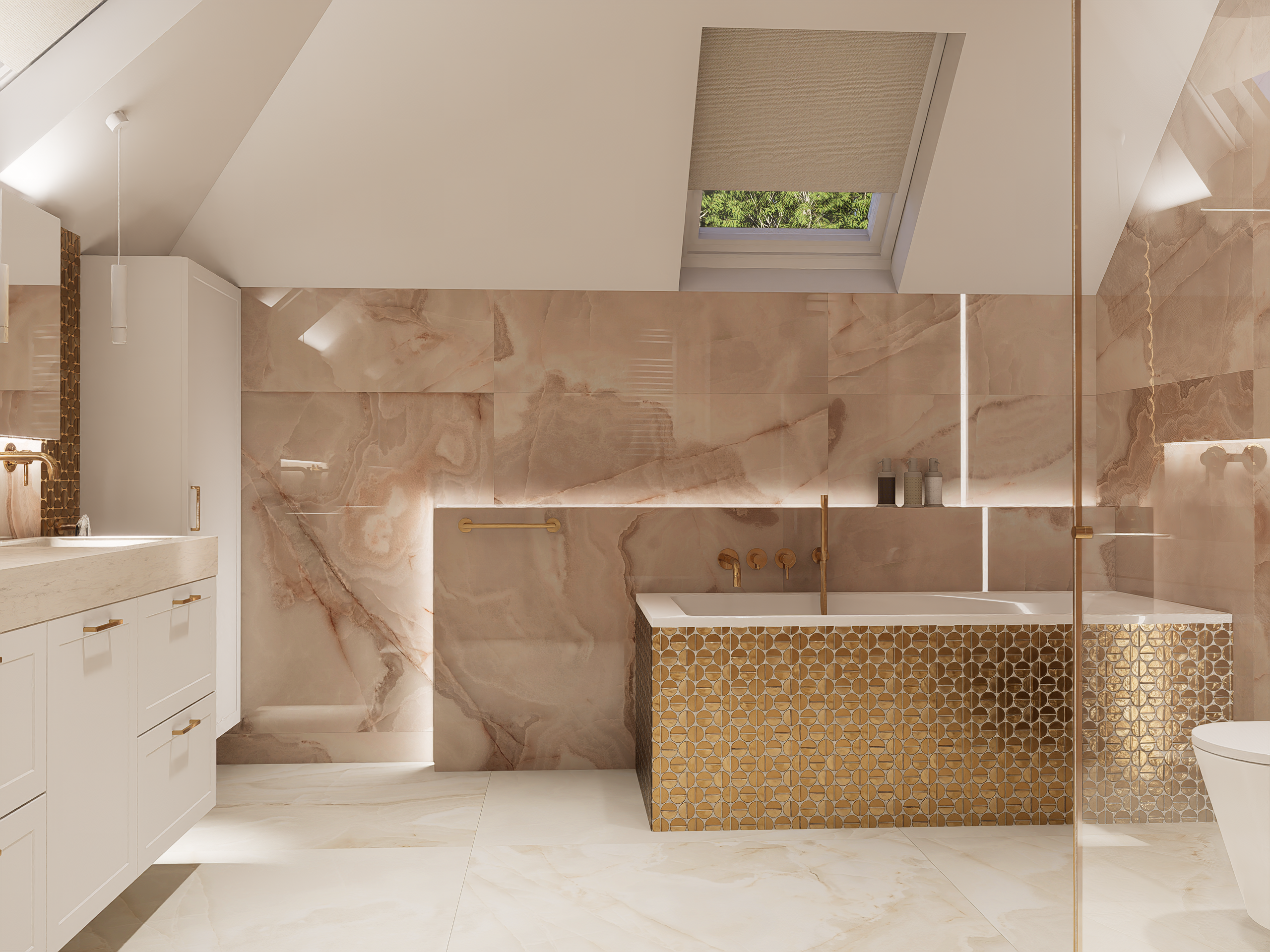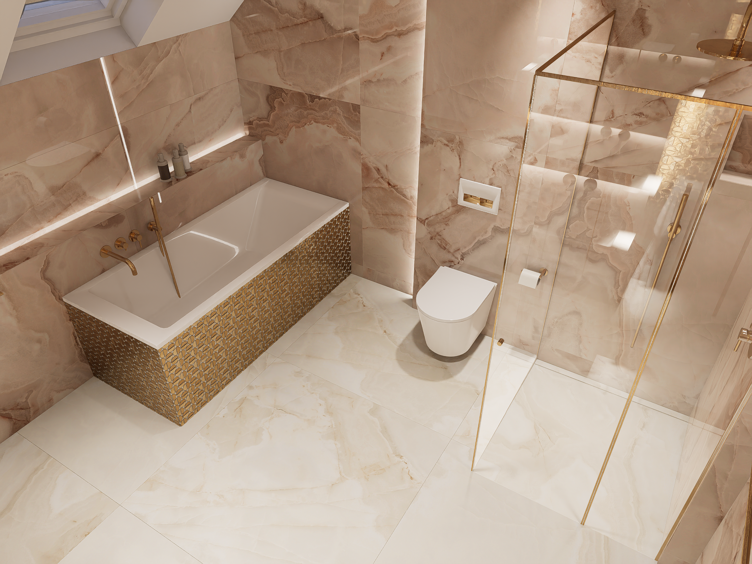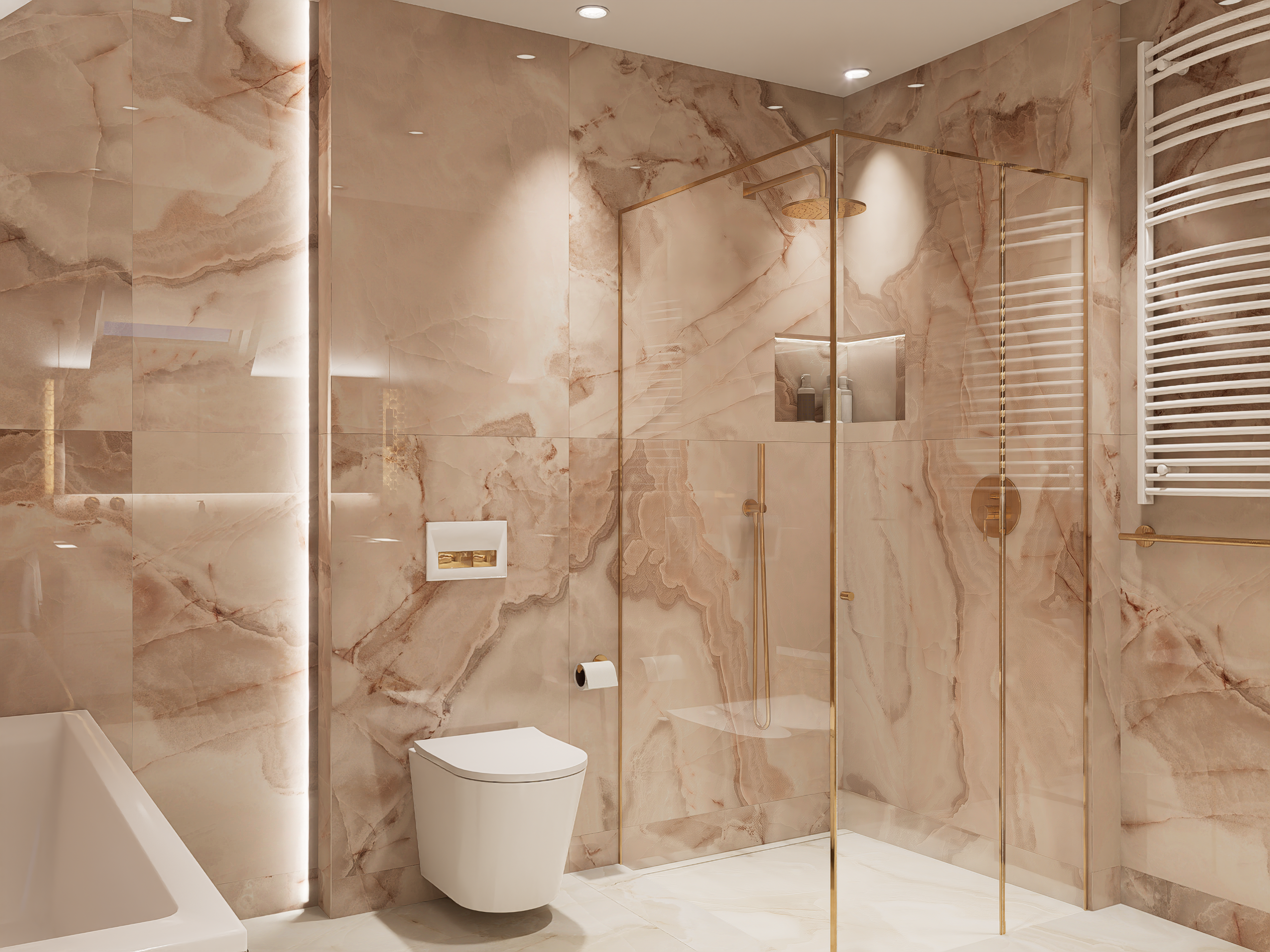 Różowa łazienka w domu jednorodzinnym